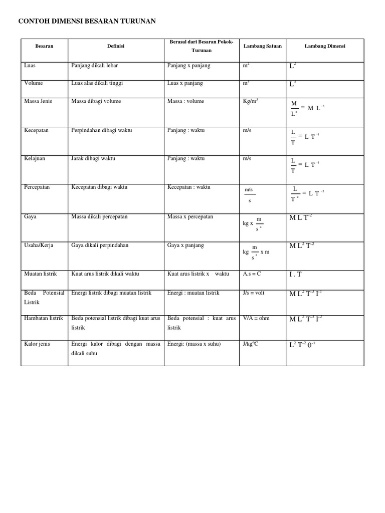 Besaran Pokok Dan Besaran Turunan Beserta Satuan Dan Dimensi from rumus.co.id Maybe you would like to learn more about one of these? Check spelling or type a new query. We did not find results for: